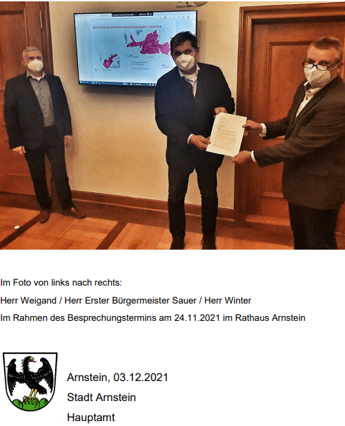 Die Stellungnahme der Stadt Arnstein ist nachfolgend zum Download bereitgestellt: