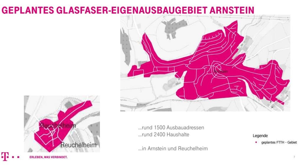 Die Stadt Arnstein hat mit Beschluss vom 23.04.2018 die Deutsche Telekom beauftragt, den Breitbandausbau entsprechend der Breitbandrichtlinie vorzunehmen.