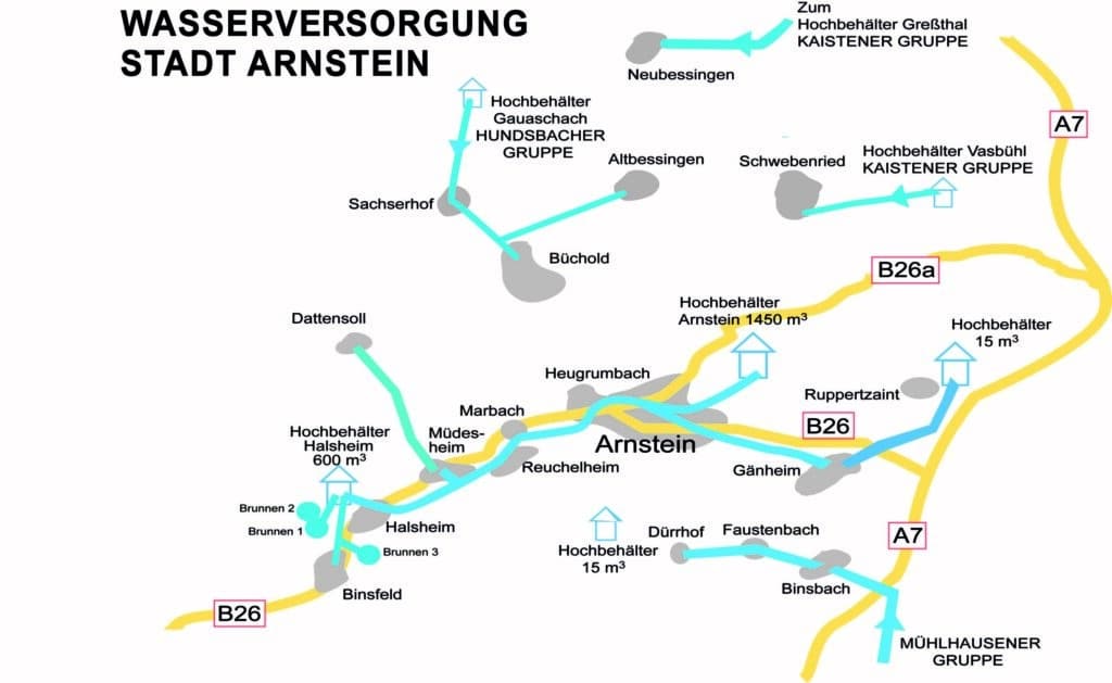 Wasserversorgung Halsheimer Gruppe für die Ortschaften Arnstein, Binsfeld, Gänheim, Heugrumbach, Reuchelheim, Müdesheim, Halsheim: